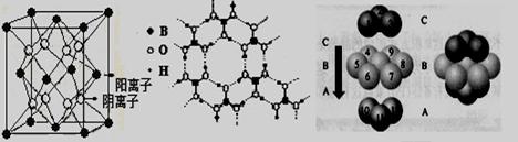 (4)D、F组成的晶体FD2结构如图Ⅰ所示,G形成晶体的结构如Ⅲ所示,Ⅱ为H3BO3(硼酸)晶体结构图