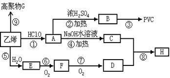 工业上用乙烯和氯气为原料合成聚氯乙烯(PVC)。已知次氯酸能跟乙烯发生加成反应:CH2=CH2+HOCl→CH2(OH)CH2Cl。以乙烯为原料制取PVC等产品的转化关系如下图所示。