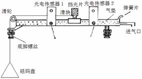 1调节底脚螺丝。打开气源,向左轻推滑块(不挂重物),当 时,可认为滑块在导轨上做匀速运动。