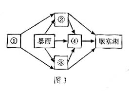 3.在图3所示的山区自然灾害链中,①②③④依次是