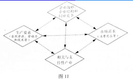 材料一:优势产业的培育,既与图11中四种因素的基本状况密切相关,又与这些因素能否相互促进有关。这一分析框架用图形表示如同钻石的顶面,因此被形象地称为“钻石模型”。
