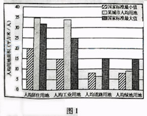 图1表示我国某城市2008年部分人均用地状况。读图1回答1~2题。