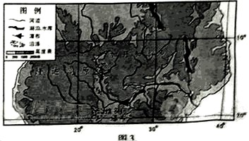 图3是非洲赞比西河流域水系分布示意图。读图3回答6-9题