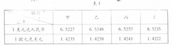 27.张某有5万美元,他决定将其中的2万美元换成人民币,3万美元换成欧元,根据表1四家银行提供的当天外汇报价,张某应选择的银行分别是