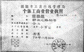 工商行政管理局颁发的一份营业执照,