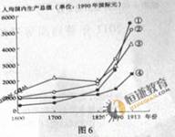 15.图6为(660-1913年西班牙、荷兰、英国和美国自殖民地时代起)人均国内生产总值变化曲线图。其中,代表英国的曲线是