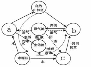 右图为“某地生态农业循环模式示意图”,读图回答3题。