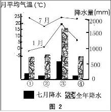 图2为“四个地区气候资料图”,据图完成3、4题。