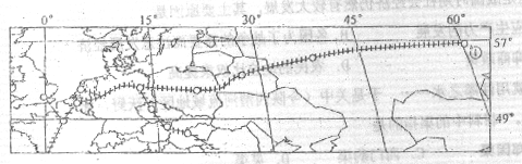 有人在某日12时(当地区时)从下图中①城乘火车前往法国巴黎,于四天后的12时(当地区时)到达,据此判断10~11题。