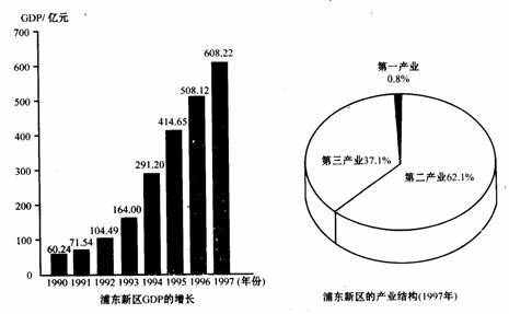 材料一 “浦东新区的GDP增长”和“浦东新区的产业结构”图