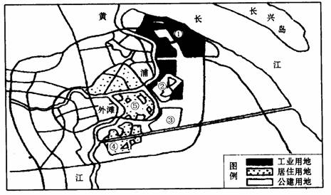 (1)浦东新区的中心商务区在图中 处,其形成的经济因素是 。(6分)
