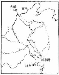 <1>根据我国古代大运河的情况,请填出左图中B点和右图中C点所联系的水系名称。