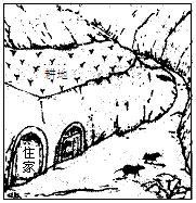 “人家半凿山腰住,车马多从头顶过”,下图是我国某地居住景观的示意图。判断下列7~10题。