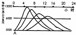 曲线依次(顺流)表示不同时间四个地点的流量 |