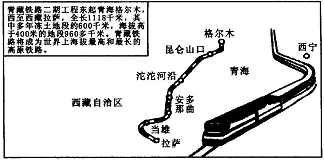 (2)青藏高原海拔高,地形复杂,气温低,发展交通极为不利。青藏铁路二期工程在建设中遇到的主要困难是_________________。(2分)