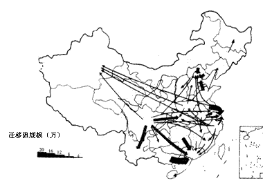 (3)民工流动主要从事 工作,人口迁移的特点是 , , 。
