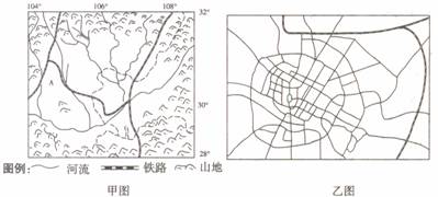 (4)分析乙图,该图为A城市交通网图。A城市道路交通网呈什么形式?