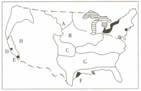 ③洛杉矶是图中代号 ;材料一中所陈述的现象在我国西部城市兰州也发生过,原因是 地形不利于空气中污染物扩散。