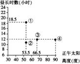 下图表示夏至日四地昼长时数和正午太阳高度。据图回答1~3题。