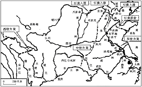 (3)哪一水利工程的建设为中线方案中的南水北调提供了充足的水源?(3分)