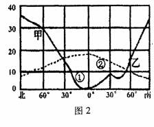 图2中的两条曲线表示地理事物或现象随纬度的变化,图中纵坐标的单位依各相关要素而定。读图回答4-6题。