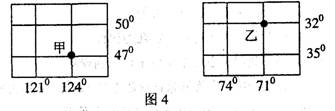图 4 为局部地区经纬网示意图(图幅相同),乙地西部临海。读图完成 10 -11 题。