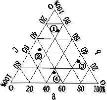 51、如果a、b、c分别代表第一、二、三产业所占的比重,则表示城市化水平最高的点是