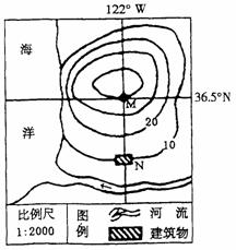 下图为某地等高线(单位:米)示意图,图中 M是一旅游景点, N处是观景楼,MN的图上距离为2厘米。读图回答52-53题。
