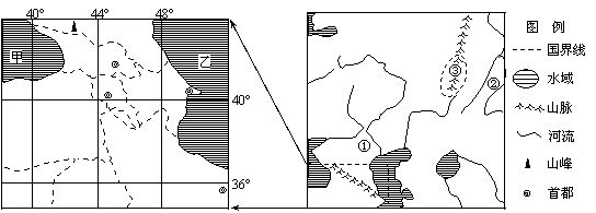 (3)我国与乙水域沿岸的 (国家)正在共同修建通往我国的输油管道。图中①、②两处附近河流春季河水的主要补给形式是 。(4分)