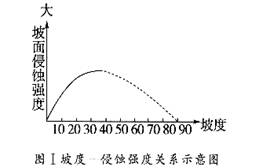C.坡度为40°时,坡面侵蚀强度最大 D.坡度为90°时,坡面侵蚀强度最小