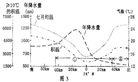 图2是沿我国境内某一经线的气候统计图。据图判断3-4题。