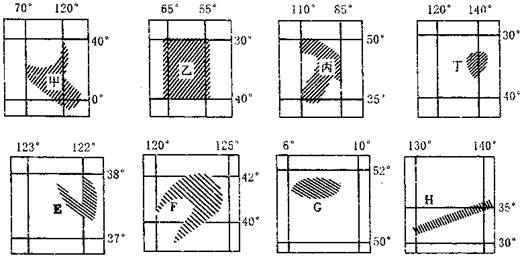 下图中阴影甲、乙、丙、丁表示世界主要农业地域类型分布区,阴影E 、F 、G 、H 表示世界和我国四个工业区,回答5-6 题。