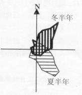 45.右图为某地冬半年和夏半年风向频率分布图(风玫瑰图)。