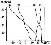 图中能正确反映我国东部1、7月气温随纬度变化的曲线分别是( )