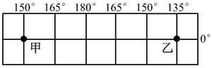 44.下图中位于赤道上的甲、乙两地,当甲地的地方时为11日20时,乙地的地方时是