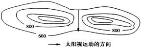 为发展旅游业,某地政府在9月20日至24日隆重推出“双龙戏珠”节。该地每年都有几天,在太阳下山时,可见到太阳徐徐从鞍部落下,形成“双龙戏珠”的地理奇观。读该地等高线地形图回答45-46题。