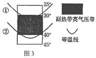 图2中①②③为地球上某时刻太阳高度等值线(①>②>③)。读图回答3题。