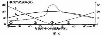 读某工业部门在某城市及其附近地区土地、运输和劳动力等成本曲线图。其中土地成本和运费都只与距城市中心的远近、交通通达度有关,回答9-11题。