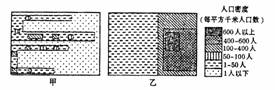 4.影响甲、乙两省(区)人口分布的主要自然条件分别是 ( )