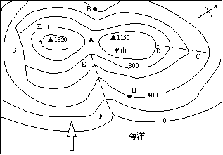 42.图中,有一处适合户外攀岩运动。运动员从崖底攀至陡崖最高处,高差可能有