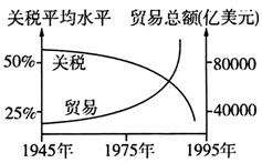 右图为“战后世界关税和贸易发展趋势图”,图中关税与贸易发展变化的趋势可以反映出