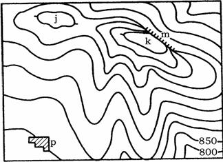43.一般来说,图中居民点P与j山峰的气温相比 ( )