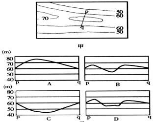 9、下图中图甲是某地区等高线地形图,沿PQ线作地形剖面图不可能是图乙中的