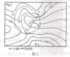 图三是“某地地形简图”,M点位于21.5°N。两中学生分别到达P、M点,测量并计算出两点相对高度是310米。读图回答5-7题。