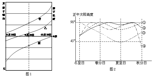 2.图2中四条曲线能够基本反映乙地正午太阳高度变化的是