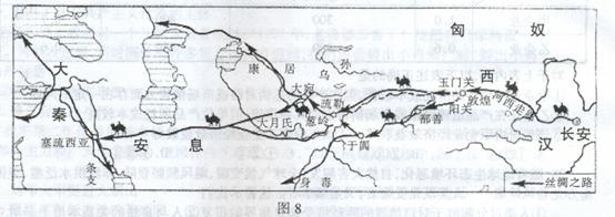 材料二:丝绸之路路线图(图8)