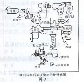 读图2(图中国家的面积大小表示某指标值的