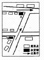 右图是江汉平原某地村庄杂货铺分布图,根据图中提供的信息