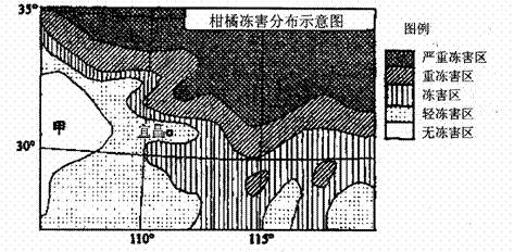 A.冻害程度随纬度升高(或大致由西南向东北)减轻