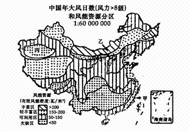 材料一:下图是我国风能资源分布图